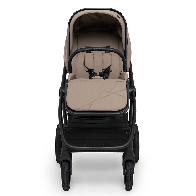 Siedzisko spacerowe Muuvo One jest obszerne i komfortowe. Można zamontować je na stelażu zarówno przodem jak i tyłem do kierunku jazdy. Tapicerka siedziska posiada ulepszoną strukturę z powłoką hydrofobową. Oparcie jest rozkładane do pozycji leżącej, co wraz z regulowanym podnóżkiem oferuje dziecku dużą i wygodną powierzchnie do odpoczynku lub drzemki na spacerze. 5-Punktowe pasy wewnętrzne z miękkimi nakładkami są regulowane i zapinane wygodną klamrą magnetyczną, która ułatwia i przyspiesza proces zapinania i rozpinania uprzęży. Budka z filtrem UPF50+ jest duża, powiększana o dodatkowy panel oraz daszek przeciwsłoneczny i okienko. Miękka, dwustronna wkładka z pianki memory w kolorze tapicerki zapewni dziecku wygodną podróż lub drzemkę. Wypinany obustronnie pałąk pokryty jest ekoskórą znajduje się w zestawie.