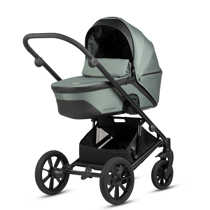 Gondola jest lekka i pojemna, waży zaledwie 3,3 kg. Montowana jest na stelażu wózka szybko i łatwo za pomocą przycisków pamięciowych. Technologia TermCot Tech tworzy bezpieczniejsze i wygodniejsze środowisko dla dziecka. Zapewnia odpowiednie warunki zarówno w ciepłe jak i zimne dni. Wewnętrzne tkaniny powlekane są specjalną technologią Silver Ions, dzięki czemu są antybakteryjne. Pokrowiec na nóżki zamykany jest wodoodpornym suwakiem. Dodatkowy wyposażone jest w wysoki kołnierz z okienkiem typu Peek a Boo do obserwacji dziecka. Daszek przeciwsłoneczny można bardzo łatwo rozłożyć i powiększyć o dodatkowy panel. Gondola posiada panoramiczny, potrójny system wentylacji dzięki siateczkowym okienkom. W zestawie z gondolą znajduje się wygodny materac z pianki memory, który dostosowuje się do kształtów dziecka. Wypiętą gondolę można używać jak kołyski do uspokojenia dziecka dzięki możliwości kołysania jej na boki.