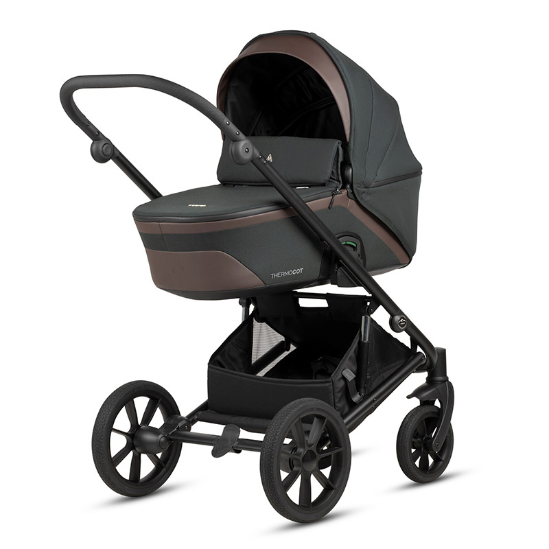 Gondola jest lekka i pojemna, waży zaledwie 3,3 kg. Montowana jest na stelażu wózka szybko i łatwo za pomocą przycisków pamięciowych. Technologia TermCot Tech tworzy bezpieczniejsze i wygodniejsze środowisko dla dziecka. Zapewnia odpowiednie warunki zarówno w ciepłe jak i zimne dni. Wewnętrzne tkaniny powlekane są specjalną technologią Silver Ions, dzięki czemu są antybakteryjne. Pokrowiec na nóżki zamykany jest wodoodpornym suwakiem. Dodatkowy wyposażone jest w wysoki kołnierz z okienkiem typu Peek a Boo do obserwacji dziecka. Daszek przeciwsłoneczny można bardzo łatwo rozłożyć i powiększyć o dodatkowy panel. Gondola posiada panoramiczny, potrójny system wentylacji dzięki siateczkowym okienkom. W zestawie z gondolą znajduje się wygodny materac z pianki memory, który dostosowuje się do kształtów dziecka. Wypiętą gondolę można używać jak kołyski do uspokojenia dziecka dzięki możliwości kołysania jej na boki.
