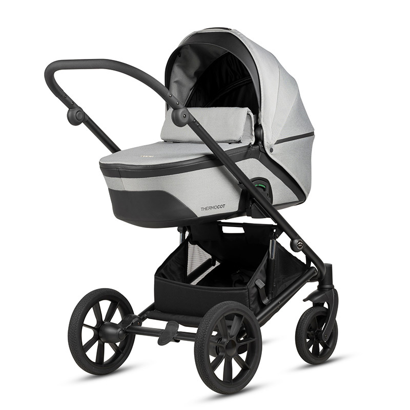 Gondola jest lekka i pojemna, waży zaledwie 3,3 kg. Montowana jest na stelażu wózka szybko i łatwo za pomocą przycisków pamięciowych. Technologia TermCot Tech tworzy bezpieczniejsze i wygodniejsze środowisko dla dziecka. Zapewnia odpowiednie warunki zarówno w ciepłe jak i zimne dni. Wewnętrzne tkaniny powlekane są specjalną technologią Silver Ions, dzięki czemu są antybakteryjne. Pokrowiec na nóżki zamykany jest wodoodpornym suwakiem. Dodatkowy wyposażone jest w wysoki kołnierz z okienkiem typu Peek a Boo do obserwacji dziecka. Daszek przeciwsłoneczny można bardzo łatwo rozłożyć i powiększyć o dodatkowy panel. Gondola posiada panoramiczny, potrójny system wentylacji dzięki siateczkowym okienkom. W zestawie z gondolą znajduje się wygodny materac z pianki memory, który dostosowuje się do kształtów dziecka. Wypiętą gondolę można używać jak kołyski do uspokojenia dziecka dzięki możliwości kołysania jej na boki.