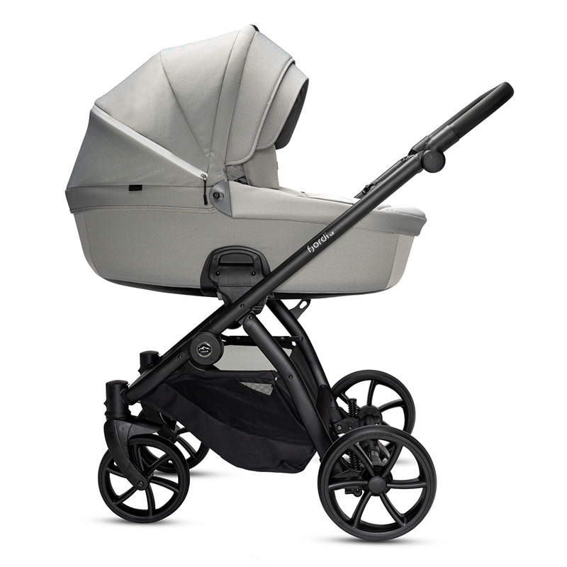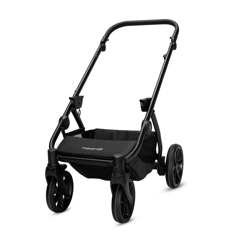 Wózek głęboko spacerowy Noordi Fjordi V.2. Przeznaczony jest dla dzieci od urodzenia do maksymalnej wagi 22kg. Stelaż jest łatwy w składaniu, zarówno z siedziskiem wpiętym przodem, jak i tyłem do kierunku jazdy. Niska waga 7,25 kg pozwala na sprawne przenoszenia stelaża i jego transport. Wydajna amortyzacja tylnej osi ułatwia prowadzenie wózka w trudnym terenie, minimalizuje nierówności i wibracje. Duże, bezobsługowe, piankowe koła All-Road sprawdzą się idealnie na każdej powierzchni. Przednie koła są skrętne z możliwością zablokowania do jazdy na wprost. Centralny hamulec jest prosty w obsłudze i nie niszczy butów. Pojemny kosz pomieści niezbędne na spacerze akcesoria i zakupy. Łamana w 3 pozycjach rączka pozwala na dostosowanie jej wysokości do wzrostu rodzica.