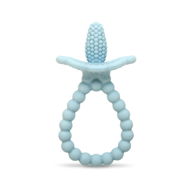 Silikonowy gryzak RaZbaby w kształcie maliny z ergonomicznym uchwytem. Jest odpowiedni dla dzieci od 3 miesiąca życia. Jego kształt i opatentowana struktura Berry Pumps delikatnie masują dziąsła dziecka na etapie ząbkowania. Aby wzmocnić jego działanie można go schłodzić w lodówce lub zamrozić. Dzięki uchwytowi dostosowanemu do małych rączek, dziecko może samodzielnie z niego korzystać. Gryzak wykonany jest w 100% wolny od BPA, PVC, ftalanów, ołowiu i kadmu. Uwaga! Mimo swojego kształtu, gryzak nie jest smoczkiem. Przed pierwszym użyciem należy zamoczyć (nie gotować) w gorącej wodzie na 5 minut, potem przelać zimną wodą i delikatnie pozbyć się jej nadmiaru.