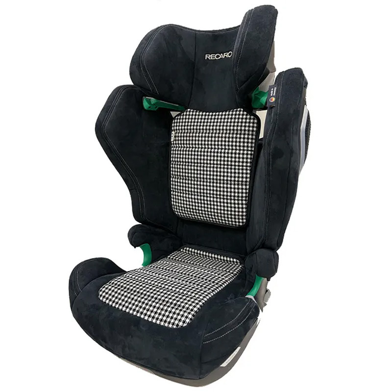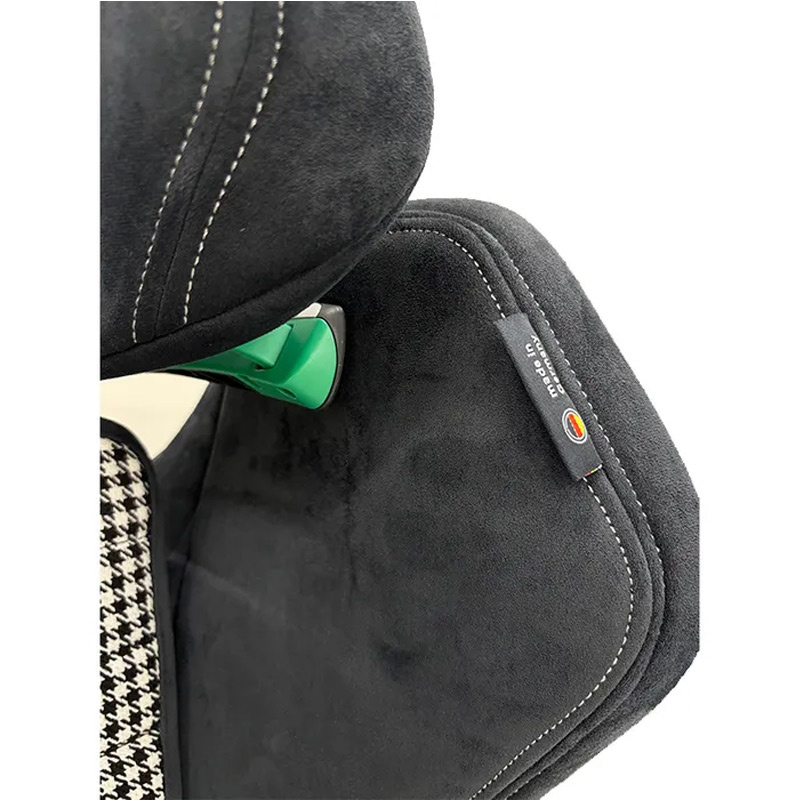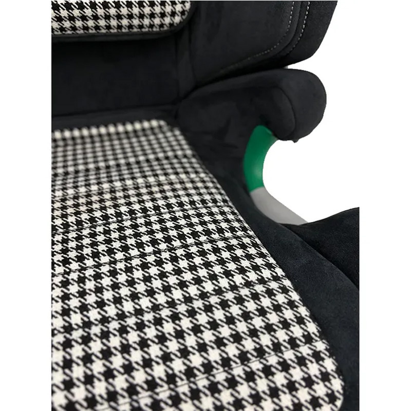 Recaro Axion 1, bezpieczny i stylowy fotelik samochodowy. Limitowana edycja tapicerki Pepita powstała we współpracy z kultową marką Porsche. Ponadczasowy wzór charakterystycznej kratki opracowany w latach sześćdziesiątych w połączeniu z miękkością i jakością czarnej alcantary to wyznacznik elegancji i komfortu .