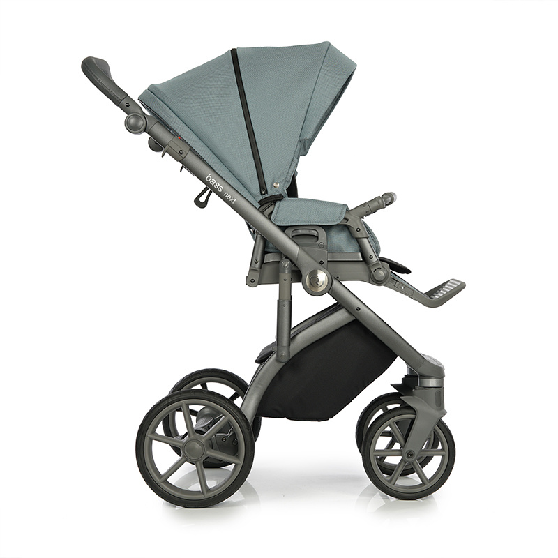Gondola wózka Bass Next jest obszerna i wygodna. Wpinanie na stelaż jest szybkie i proste dzięki jednemu kliknięciu.  Wnętrze wyściełane jest wysokiej jakości materiałami, zapewnia przytulne środowisko dla noworodka. Gondola ma możliwość regulowania uparcia, co jest szczególnie pomocne i zapewnia dodatkowy komfort.  Budka z dodatkowym panelem i daszkiem przeciwsłonecznym skutecznie chroni przed deszczem i słońcem. Wbudowana w budkę wentylacja zapewnia odpowiednią cyrkulację powietrza. Zapinana na suwak osłonka gondoli z okienkiem sprawdzi się w chłodniejsze, wietrzne miesiące.