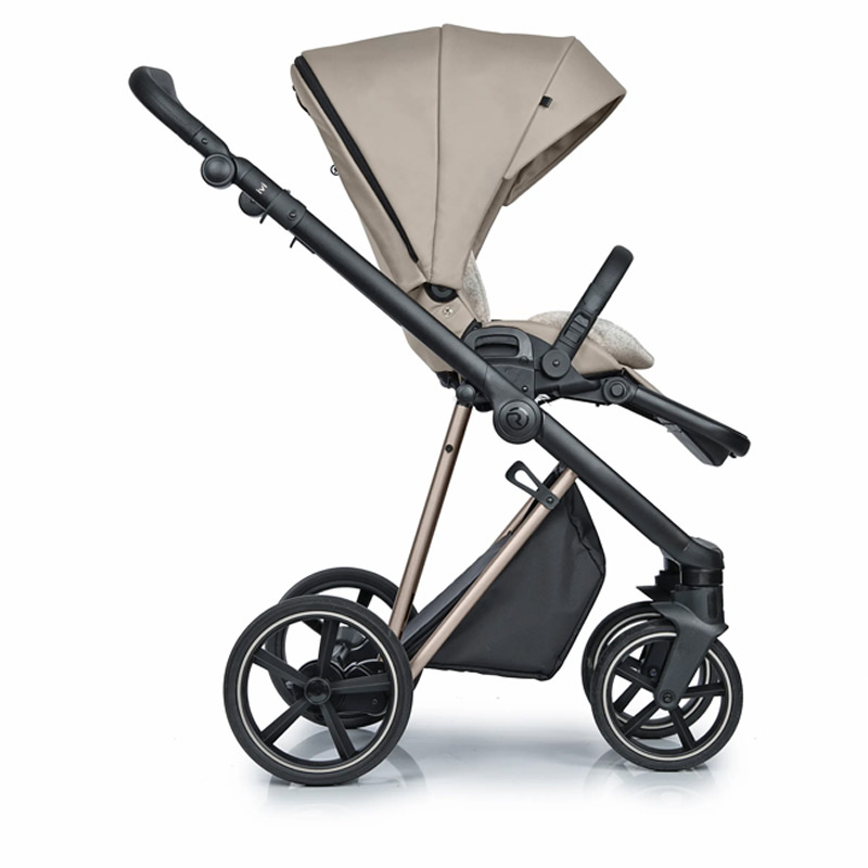 Siedzisko spacerowe możemy zamontować zarówno przodem jak i tyłem do kierunku jazdy. Rozkłada się do pozycji leżącej, co w połączeniu z regulowanym podnóżkiem oferuje przyjemną powierzchnię do drzemek i odpoczynku. 5-punkowe pasy zapewniają bezpieczeństwo i pozwalają utrzymać dziecko w prawidłowej pozycji podczas spaceru. Budka w siedzisku jest duża z możliwością powiększenia o dodatkowy, rozsuwany panel i daszek przeciwsłoneczny. Do siedziska dołączony jest pałąk który stanowi kolejny element ochronny, a jednocześnie oferuje dziecku wygodne oparcie dla rączek podczas spacerów. Osłonka na nóżki z łatwym dostępem ochroni dziecko przed chłodem i wiatrem.