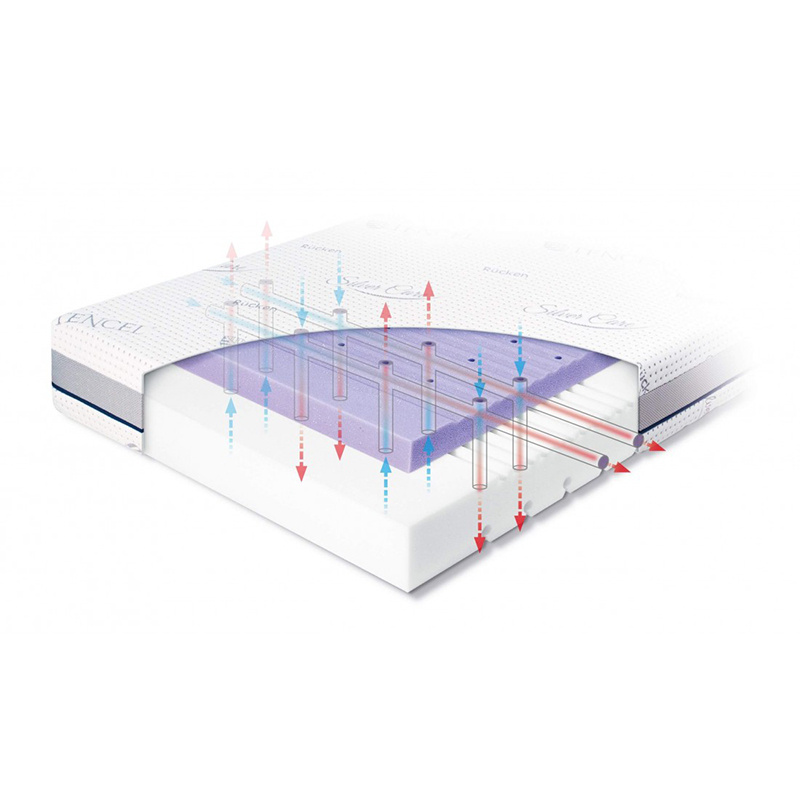 Fioletowa pianka na długo pozostaje higieniczna i bezzapachowa.Pianka szczególnie rekomendowana dla alergików. Biała pianka gwarantuje odporność na odkształcenia, nawet przy intensywnym użytkowaniu. Gwarantuje doskonałą sprężystość i stabilne podparcie plecków. System Air pro zapełni swobodna wentylację która ułatwi utrzymanie komfortowej temperatury spania.