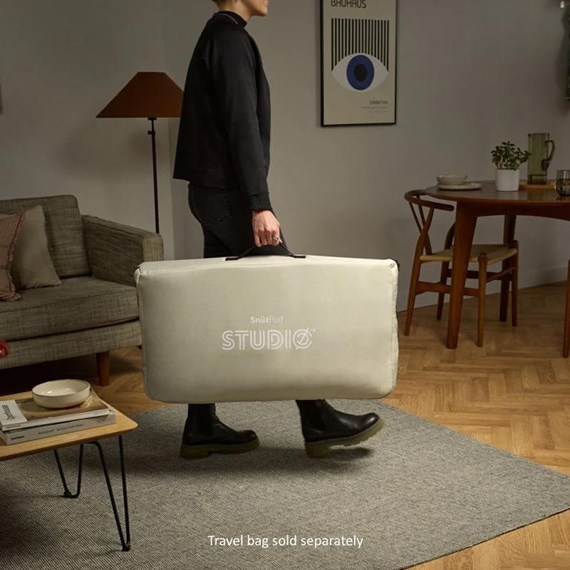 Snuz Torba Transportowa do łóżeczka dostawnego SnuzPod Studio. Idealna do transportu złożonego łóżeczka. Wykonana jest z wysokiej jakości, trwałych materiałów, dzięki czemu zabezpieczy łóżeczko przez zabrudzeniami lub uszkodzeniom w trakcie transportowania. Posiada dodatkowe kieszenie z przeznaczeniem do akcesoriów. Gdy nie jest używana, składa się do kompaktowych rozmiarów.