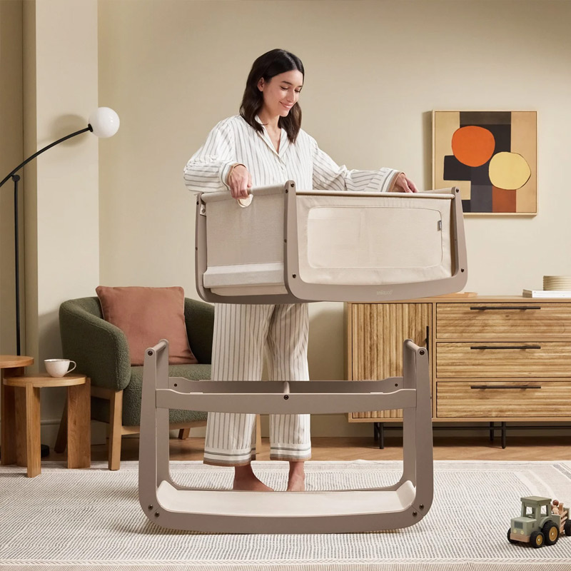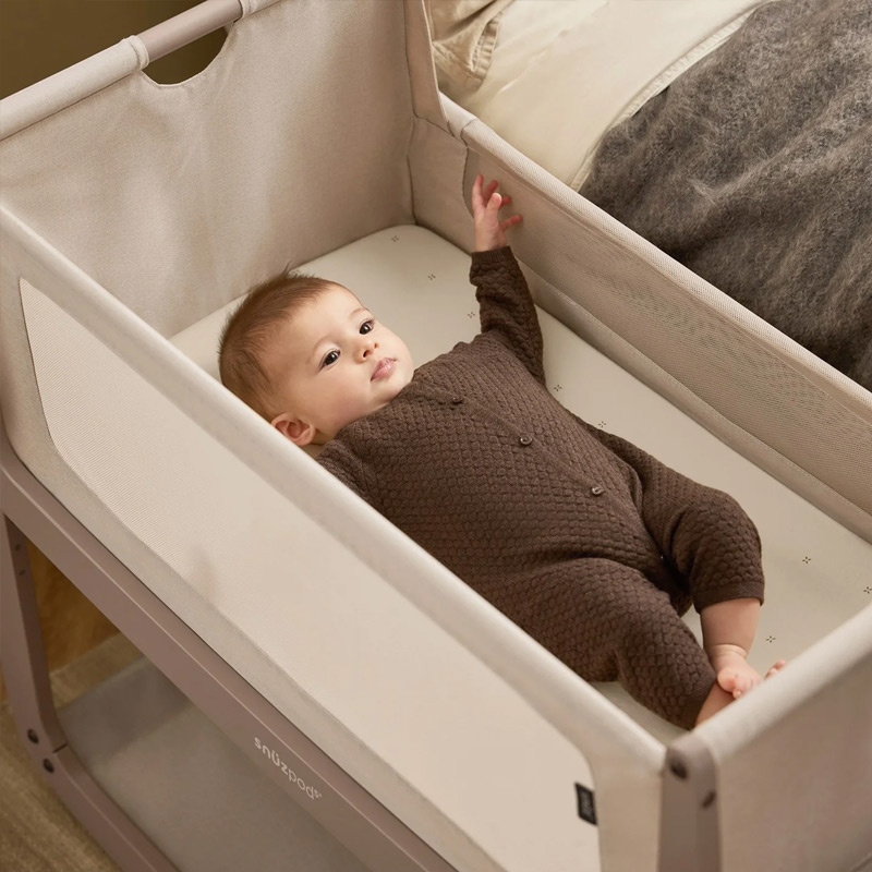 SnuzPod5 wielofunkcyjne łóżeczko dostawne. Przeznaczone jest dla dzieci od urodzenia do maksymalnej wagi 9 kg lub do momentu, aż zaczną samodzielnie siedzieć. Rama wykonana jest z wysokiej jakości litego drewna, drewna klejonego oraz sklejki bukowej (w zależności od kolory ramy, a całość waży 12,9 kg. SnuzPod 5 nadaje się również do stosowania przy łóżku rodziców, a regulacja pozwala na dostawienie łóżeczka do maksymalnej wysokości 73 cm od podłogi.