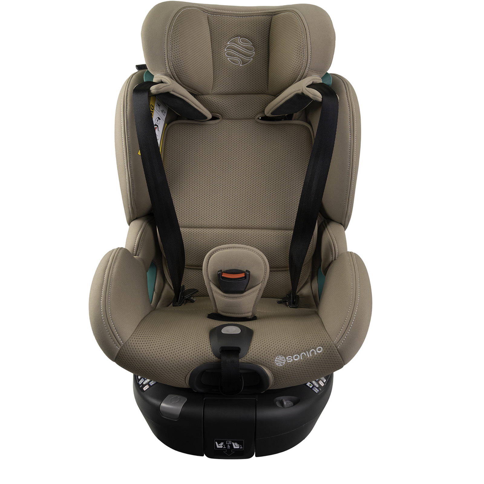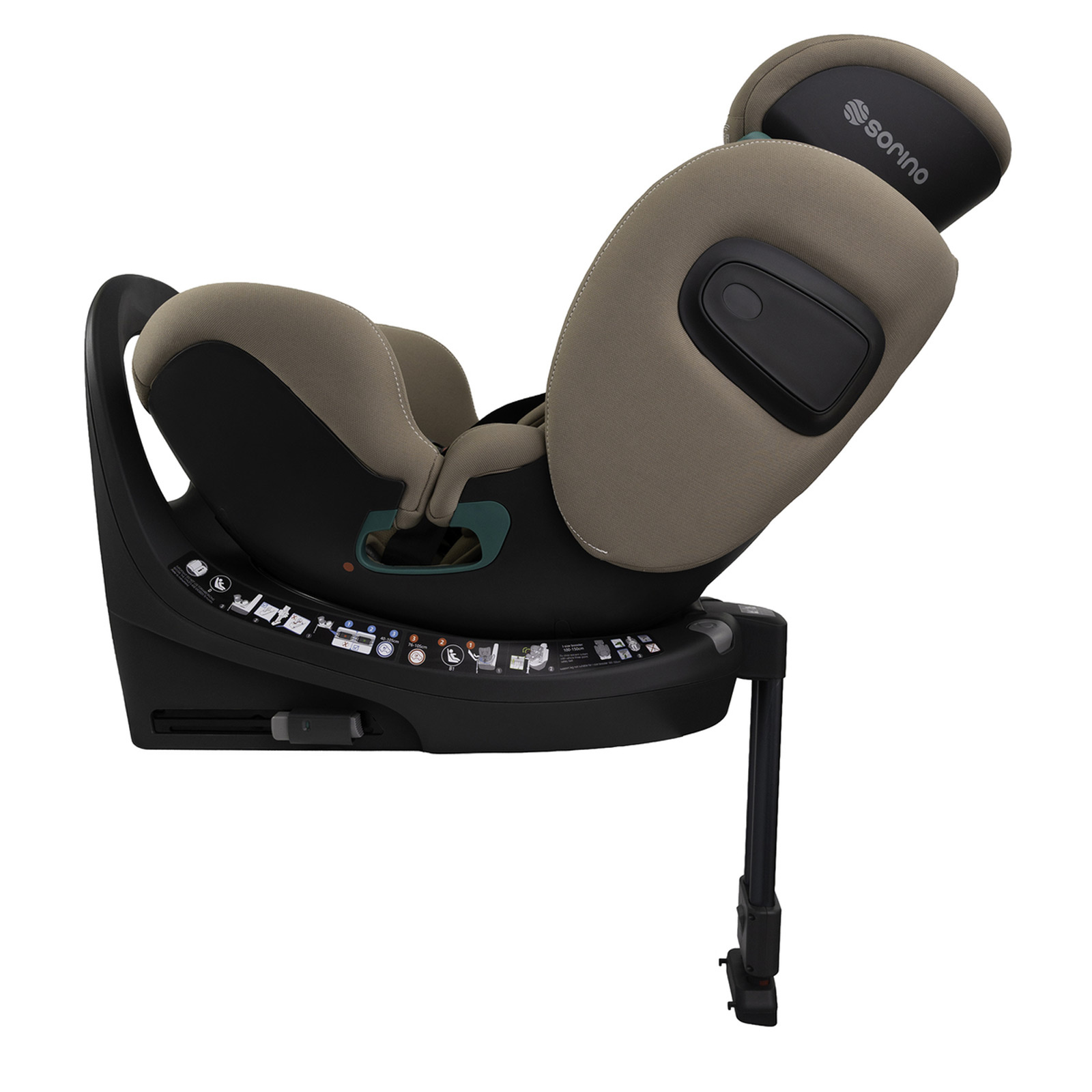 • Fotelik samochodowy Sorino Aurora 40–150 cm zgodny z normą i-Size, z bazą obrotową 360°, montażem ISOFIX, 3 pozycjami pochylenia w obu kierunkach jazdy oraz zagłówkiem z automatycznie rozszerzającymi się bokami.