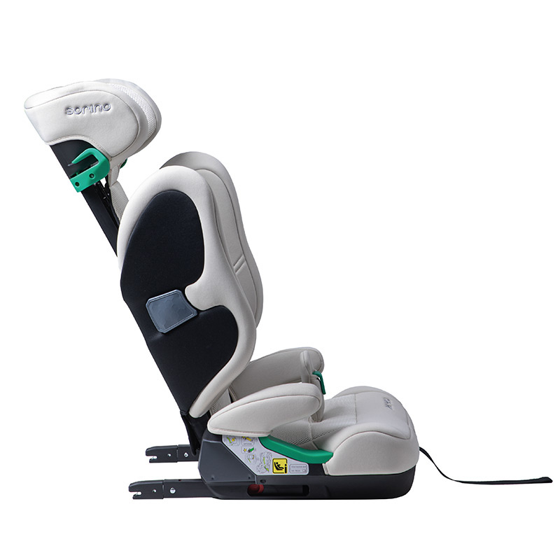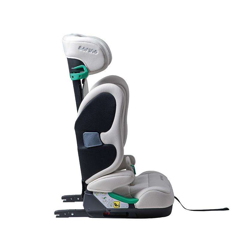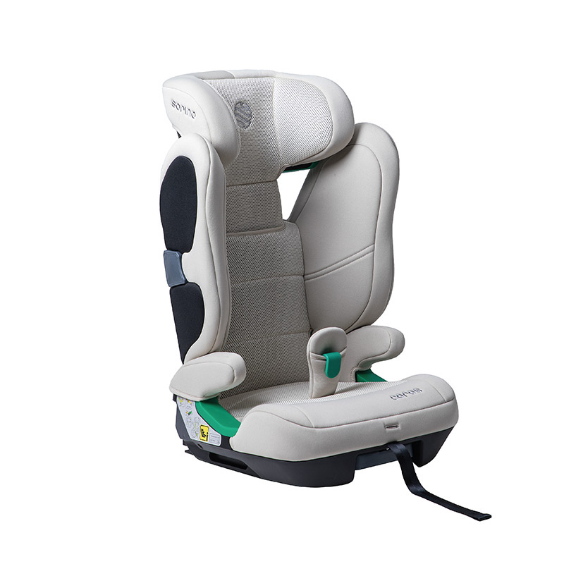 Fotelik samochodowy Sorino Cares, zgodny jest z najnowszą normą i-Size. Przeznaczony dla dziecka od 100 cm do 150 cm wzrostu. Montowany jest w samochodzie przy użyciu systemu isofix i 3-punktowego pasa lub samego pasa. Dzięki prowadnicom pasa biodrowego i barkowego Sorino Cares zapewnia poprawne i bezpieczne zapięcie dziecka. Szerokie i komfortowe siedzisko wykonane jest z miękkiej pianki zapewniającej komfort. Zagłówek z pianką absorbującą energię uderzenia jest regulowany w 11 pozycjach. 7-stopniowa regulacja oparcia gwarantuje dziecku wygodną pozycję w podróży. Tapicerka z siateczką Mesh 3D odpowiada za prawidłową cyrkulację powietrza. Wygodne podłokietniki wspierają naturalną pozycję rąk dziecka.