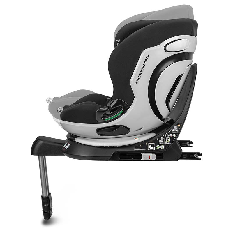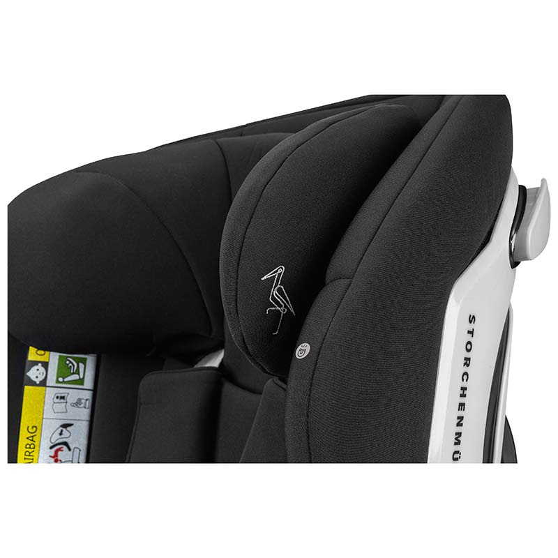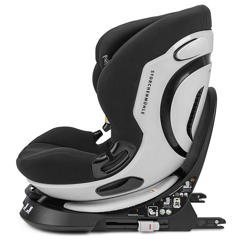 Fotelik samochodowy Storchenmuhle Niki Kid. Przeznaczony jest dla dzieci od 76 cm do 150 cm wzrostu. Montowany jest dwa sposoby, w zależności od zwrotu dziecka. Montaż isofixem do 105 cm wzrostu lub isofixem i pasami od 100 cm do końca użytkowania (150 cm). Dziecko przewożone jest tyłem do kierunku jazdy od początku (76cm) do 105 cm wzrostu i maksymalnej wagi 18 kg. Przodem od 76 cm (minimum 15 miesięcy życia) do 150 cm wzrostu. Pasy wewnętrzne posiadają magnetyczne mocowania, dzięki czemu łatwiej umieścić dziecko w foteliku. Po osiągnięciu 105 cm wzrostu pasy są demontowane i dziecko przepinane jest 3-punktowym pasem bezpieczeństwa. Innowacyjna i niespotykana w tym przedziale możliwość obrotu fotela o 360º ułatwia dziecku wejście i opuszczenie fotela. Oparcia regulowane jest 4-stopniowo, zapewnia komfort w trakcie drzemek. Optymalna ochrona boczna SIPS skutecznie absorbuje siły działające w momencie uderzenia. Zagłówek jest regulowanym w 12 pozycjach i dostosuje się do wzrostu dziecka. Tapicerka wykonana jest z tkanin o właściwościach odprowadzających wilgoć i działa antybakteryjnie. Można ją zdjąć do prania.