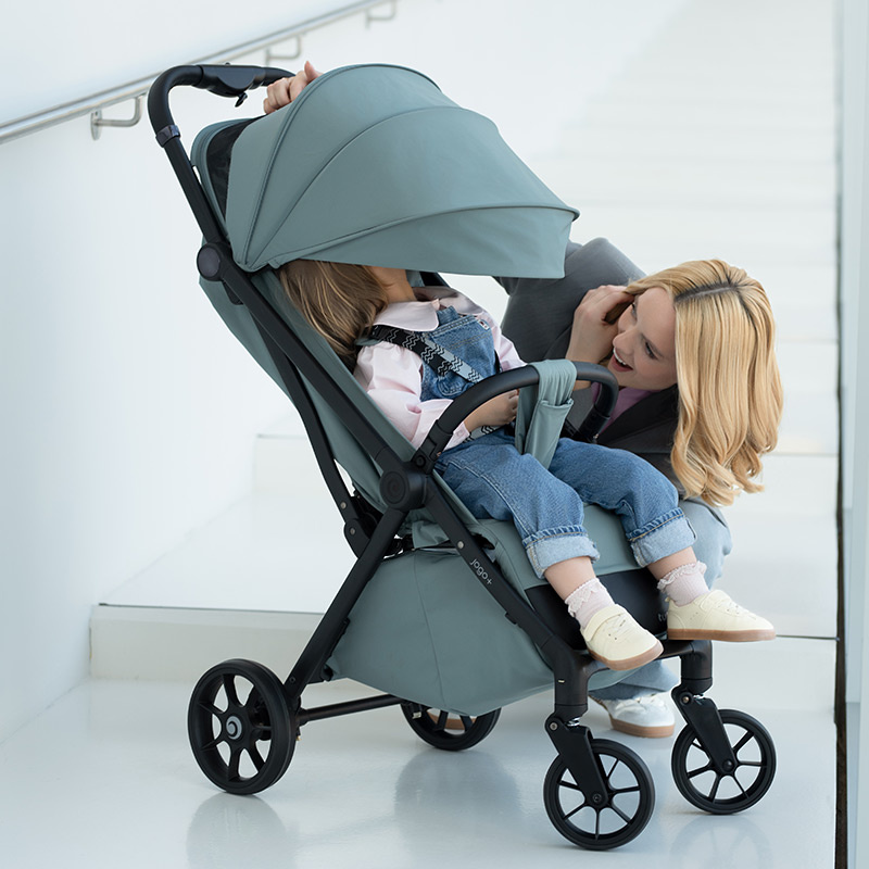 Tutis Jogo+, lekki wózek spacerowy ze sportowym charakterem. Przeznaczony jest dla dzieci w wieku około 6 miesięcy, do maksymalnej wagi 22kg. Smukły stelaż można złożyć na płasko jedną ręką. Wózek po złożeniu stoi samodzielnie i zajmuje mało miejsca, bez problemu zmieści się w bagażniku samochodu lub w domu. Wydajna amortyzacja Double Shock Absorption System pozwalają na stabilną jazdę po niemal każdym terenie. Bezobsługowe koła o średnicy 15 i 19 cm z technologią All-Road gwarantują płynne prowadzenie i łatwe manewrowanie. Wygodny hamulec umieszczony na tylnej osi jest łatwy w użyciu i nie niszczy obuwia. Duży, zamykany na magnes koszyk pod siedziskiem pomieści wszystkie niezbędne na spacerze akcesoria i zakupy.