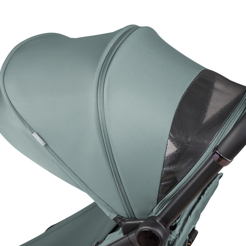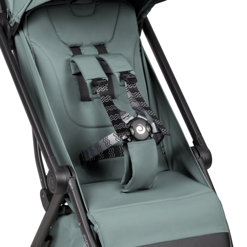 Tutis Jogo+ posiada wygodne siedzisko i sporą przestrzeń do spania o długości 85cm. Oparcie regulowane jest w 3 pozycjach, do pozycji leżącej. Podnóżek również jest regulowany aby zapewnić dziecku maksimum komfortu. Siedzisko wyposażone jest w pięciopunktowe pasy bezpieczeństwa z miękkimi nakładkami i magnetyczną klamrą, ułatwiającą wpinanie. Duża budka z wysuwanym daszkiem przeciwsłonecznym oraz dodatkowym panelem skutecznie chroni przed mocnym słońcem i wiatrem. Okienko wentylacyjne peek-a-boo na szczycie budki pozwoli obserwować dziecko i zapewnia dodatkowy przewiew. Zintegrowany system wentylacji jest bardzo wydajny. Kontrolowany za pomocą zamków zapewnia cyrkulację powietrza niezbędną dla komfortu dziecka. Wypinany obustronnie pałąk z ekoskóry znajduje się w zestawie.