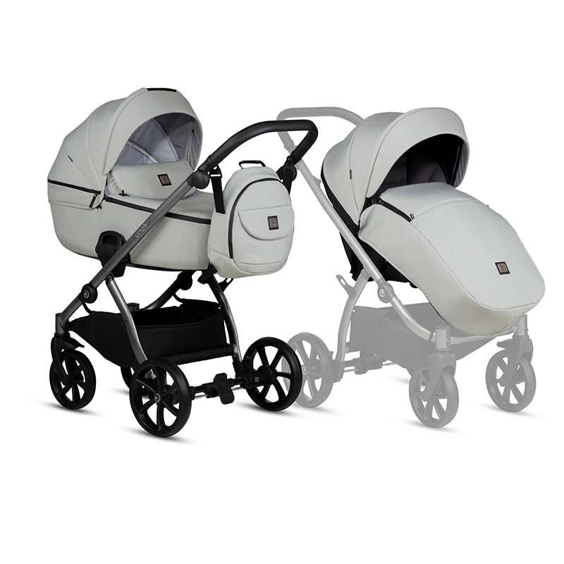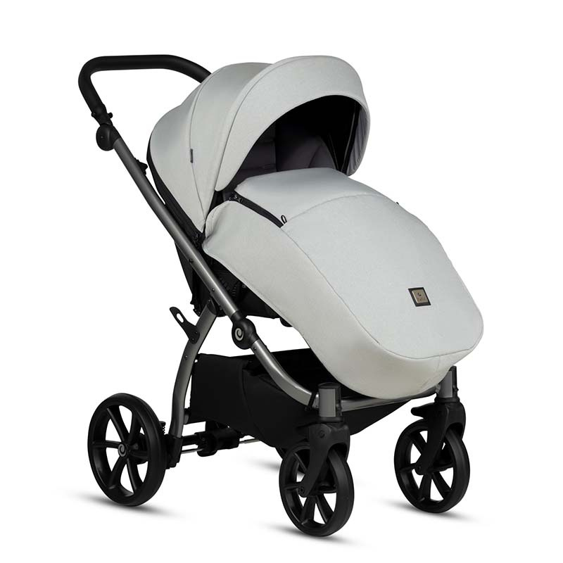 Siedzisko spacerowe jest pojemne i rozkładane na płasko. Homologowane jest do 22 kg wagi dziecka. Można je zamontować tyłem lub przodem do kierunku jazdy. Oparcie można regulować do wygodnej pozycji leżącej na płasko. Budka wyposażona jest w filtr UPF50+, rozkładany daszek przeciwsłoneczny i dodatkowy panel z siateczką wentylacyjną. Podnóżek na stopy można regulować w zależności od wzrostu i potrzeb dziecka. 5-punktowe pasy wewnętrzne zapewniają bezpieczeństwo a dzięki dodatkowym otworom można je regulować do wzrostu dziecka w 3 pozycjach.
