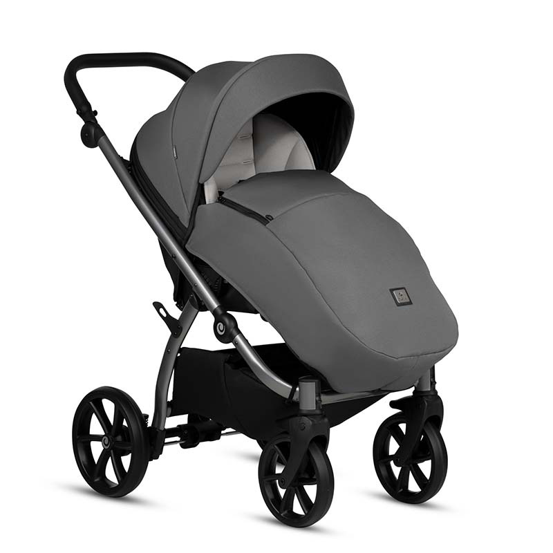 Siedzisko spacerowe jest pojemne i rozkładane na płasko. Homologowane jest do 22 kg wagi dziecka. Można je zamontować tyłem lub przodem do kierunku jazdy. Oparcie można regulować do wygodnej pozycji leżącej na płasko. Budka wyposażona jest w filtr UPF50+, rozkładany daszek przeciwsłoneczny i dodatkowy panel z siateczką wentylacyjną. Podnóżek na stopy można regulować w zależności od wzrostu i potrzeb dziecka.  5-punktowe pasy wewnętrzne zapewniają bezpieczeństwo a dzięki dodatkowym otworom można je regulować do wzrostu dziecka w 3 pozycjach.