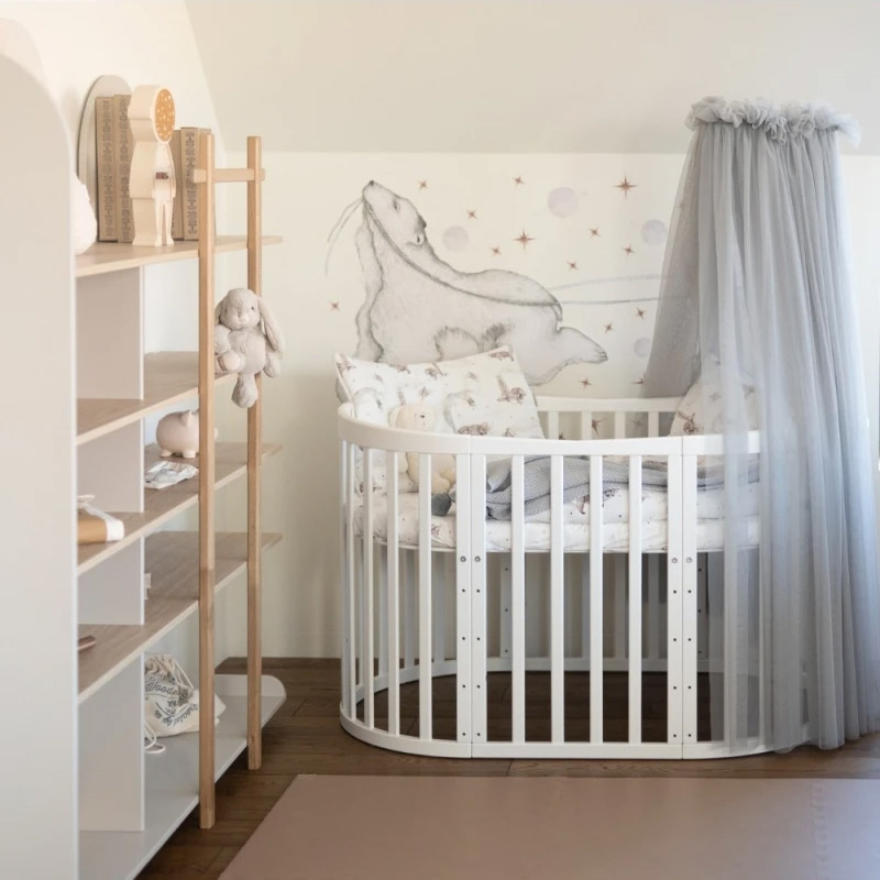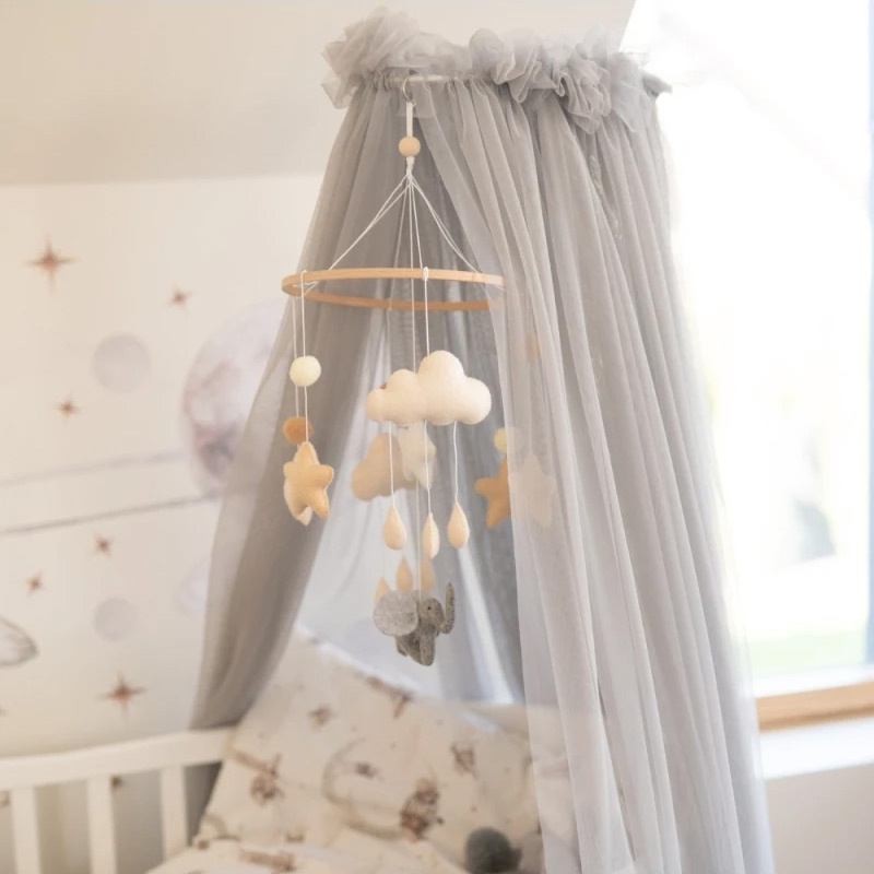 - Nastrojowe i funkcjonalne akcesorium do łóżeczka z tiulu miekkiego.