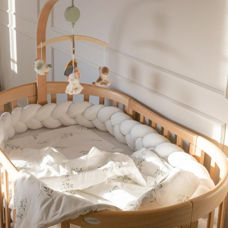 • Stylowy ochraniacz na szczebelki, 3-pasmowy warkocz.